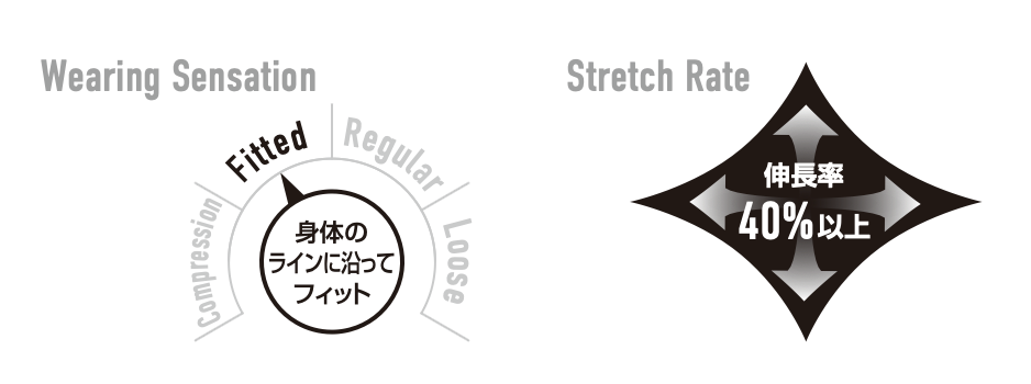 ★軽量性、吸汗速乾、UVカット(UPF45)と快適な機能を有するクールストレッチ素材