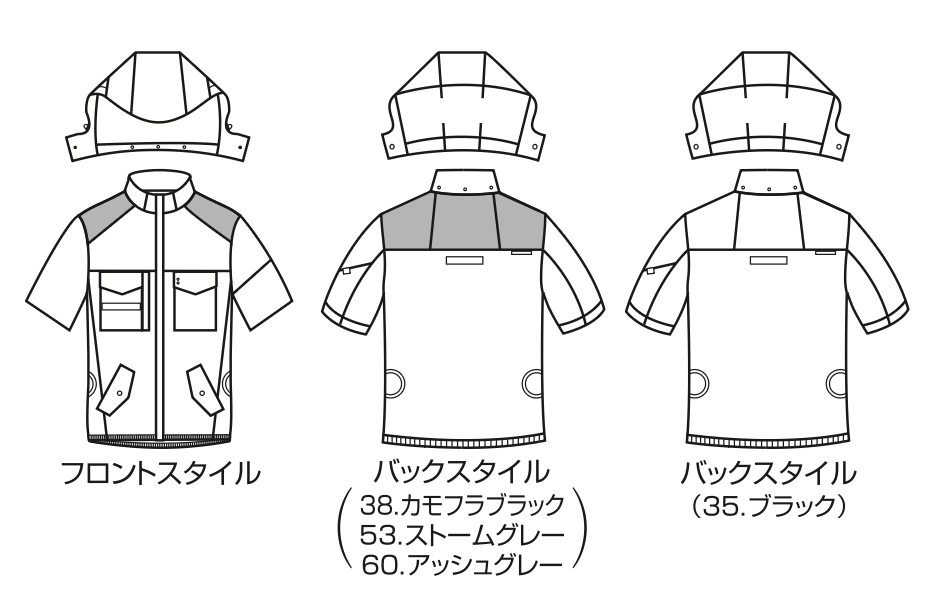 カラー(全4色)/35.ブラック 38.カモフラブラック 53.ストームグレー 60.アッシュグレー