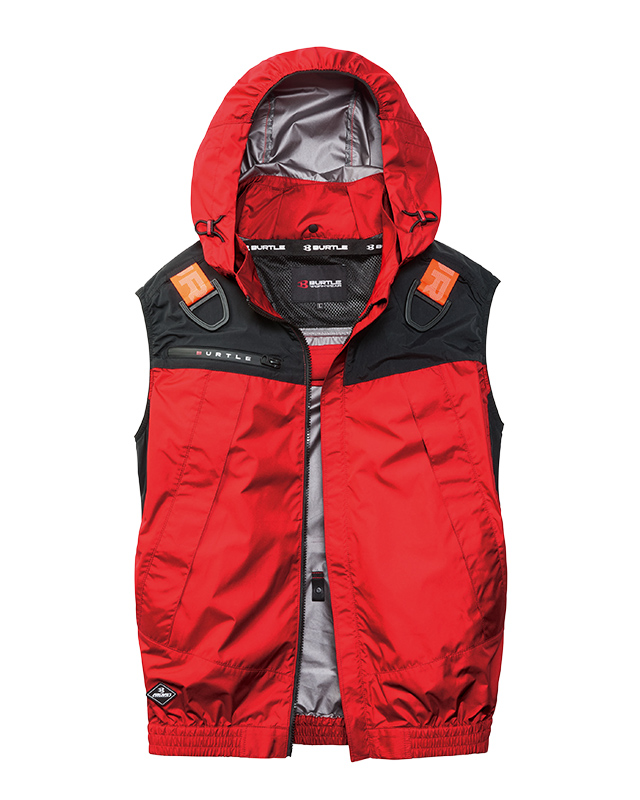★ヘルメット収納フード(着脱可能)、フックハンガー、背ランヤードホールを配備しフルハーネスに完全対応