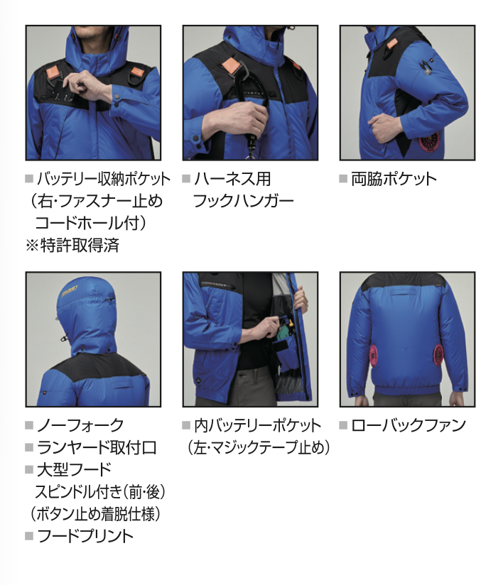 フルハーネスに対応した本格ワークスペックモデルながら、カジュアルなマウンテンパーカデザインはワークシーンからデイリーまで幅広いシーンをフォロー