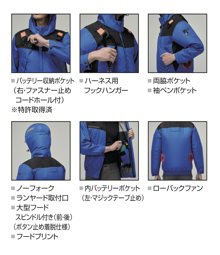 フルハーネスに対応した本格ワークスペックモデルながら、カジュアルなマウンテンパーカデザインはワークシーンからデイリーまで幅広いシーンをフォロー