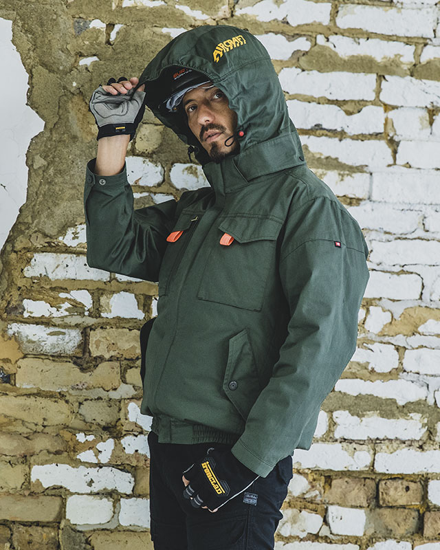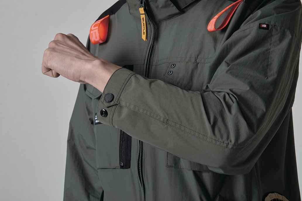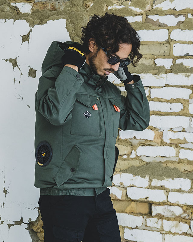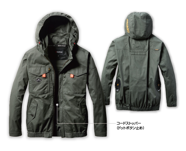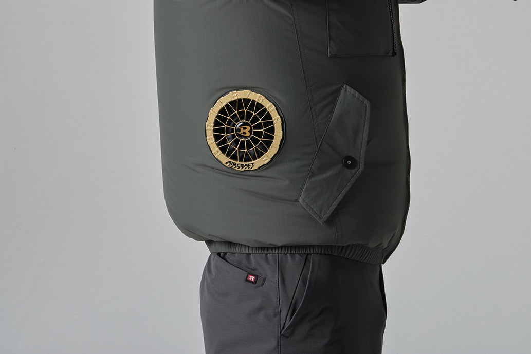ハードな環境下でのワークシーンに欠かせない耐久性に優れた綿100%素材を使用した機能的なミルスペックデザインのサイドファンプロダクト