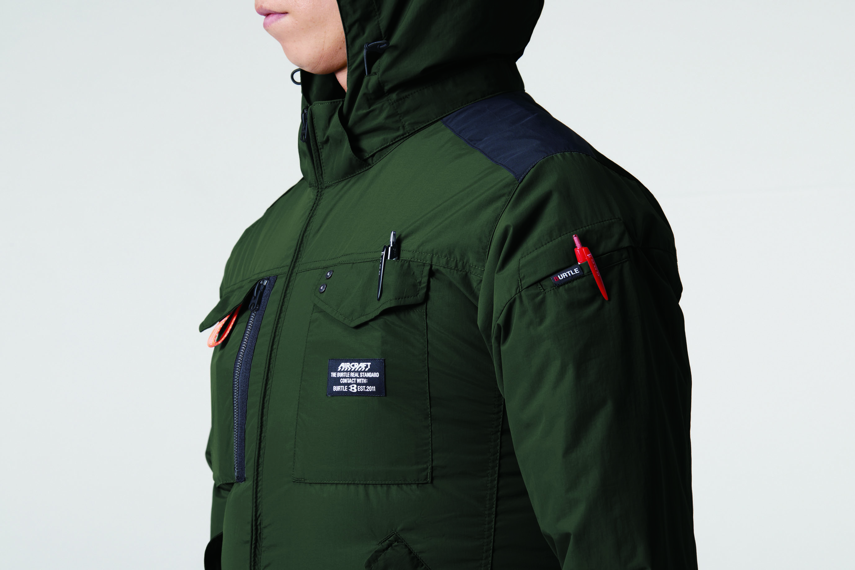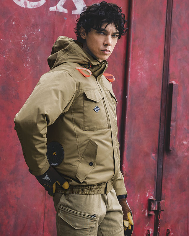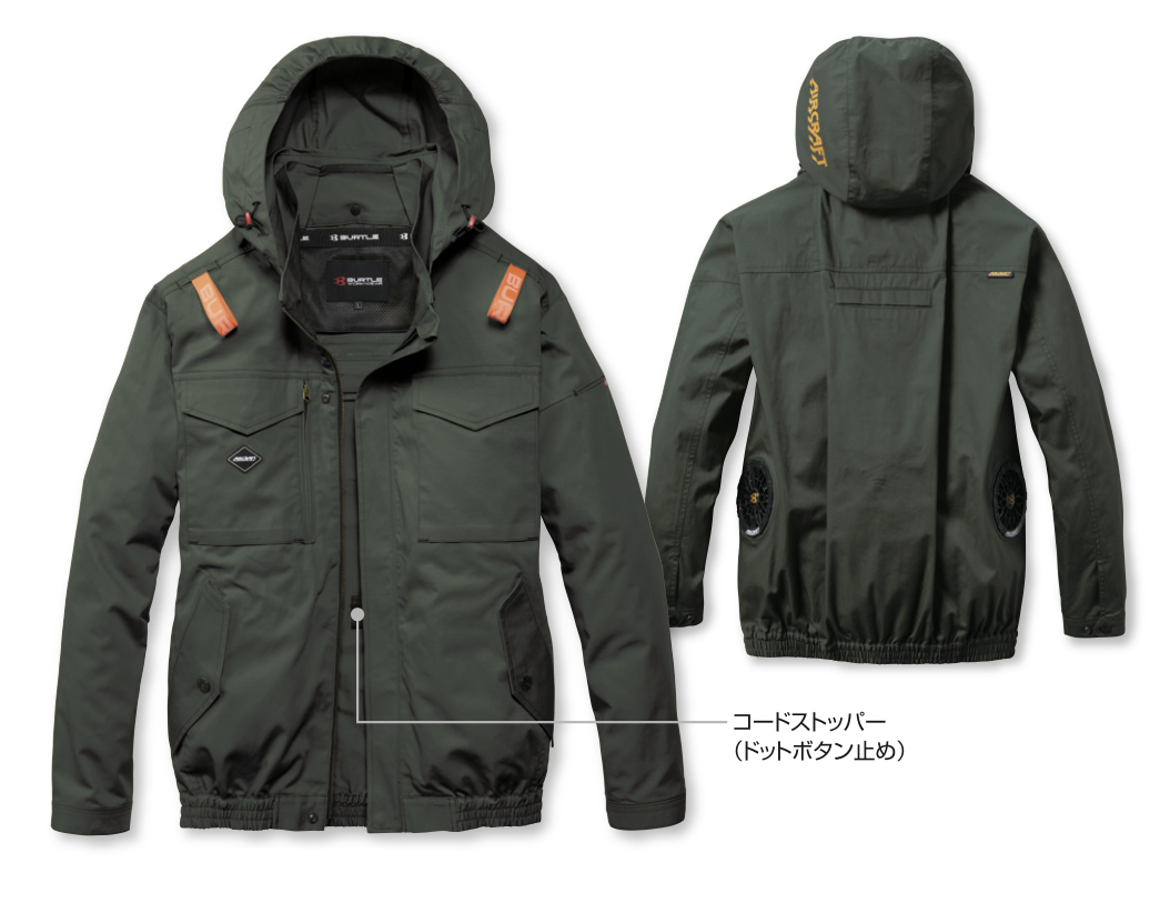 ハードな環境下でのワークシーンに欠かせない耐久性に優れた綿100%素材を使用した機能的なミルスペックデザインのサイドファンプロダクト