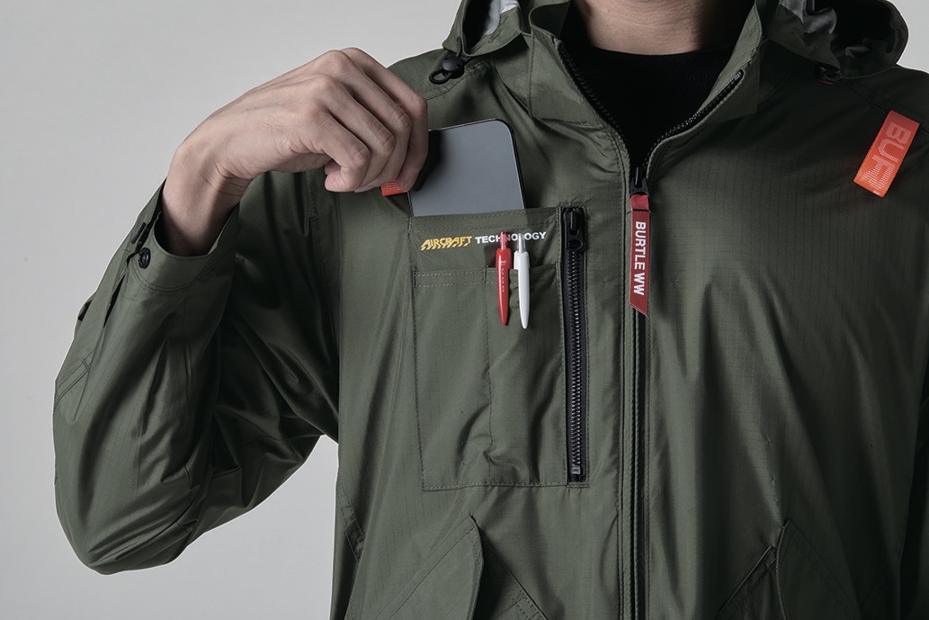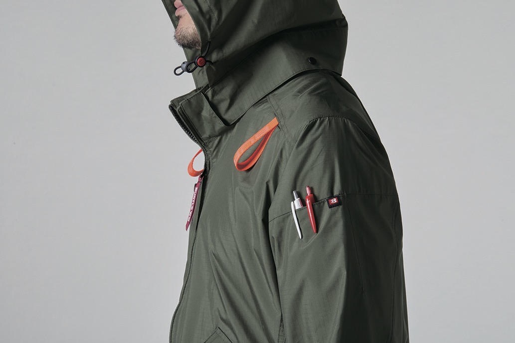 耐久性の高いポリエステルリップストップ生地を用いた本格的なミリタリーアイテムを思わせる機能的なタクティカルサイドファンプロダクト