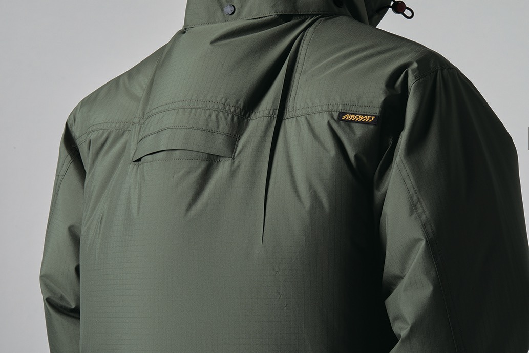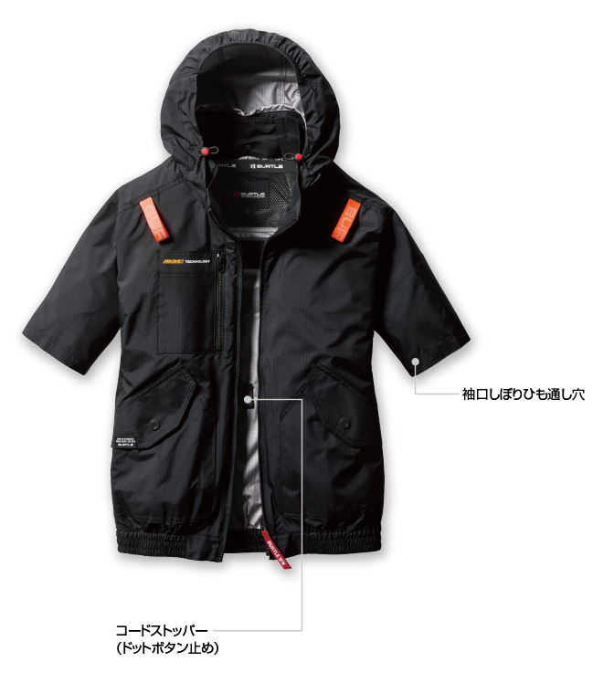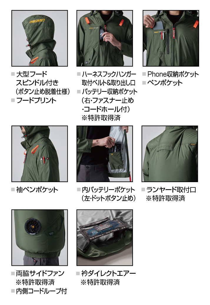 ★ヘルメット収納フード(着脱可能)、フックハンガー、背ランヤードホールを配備しフルハーネスに完全対応