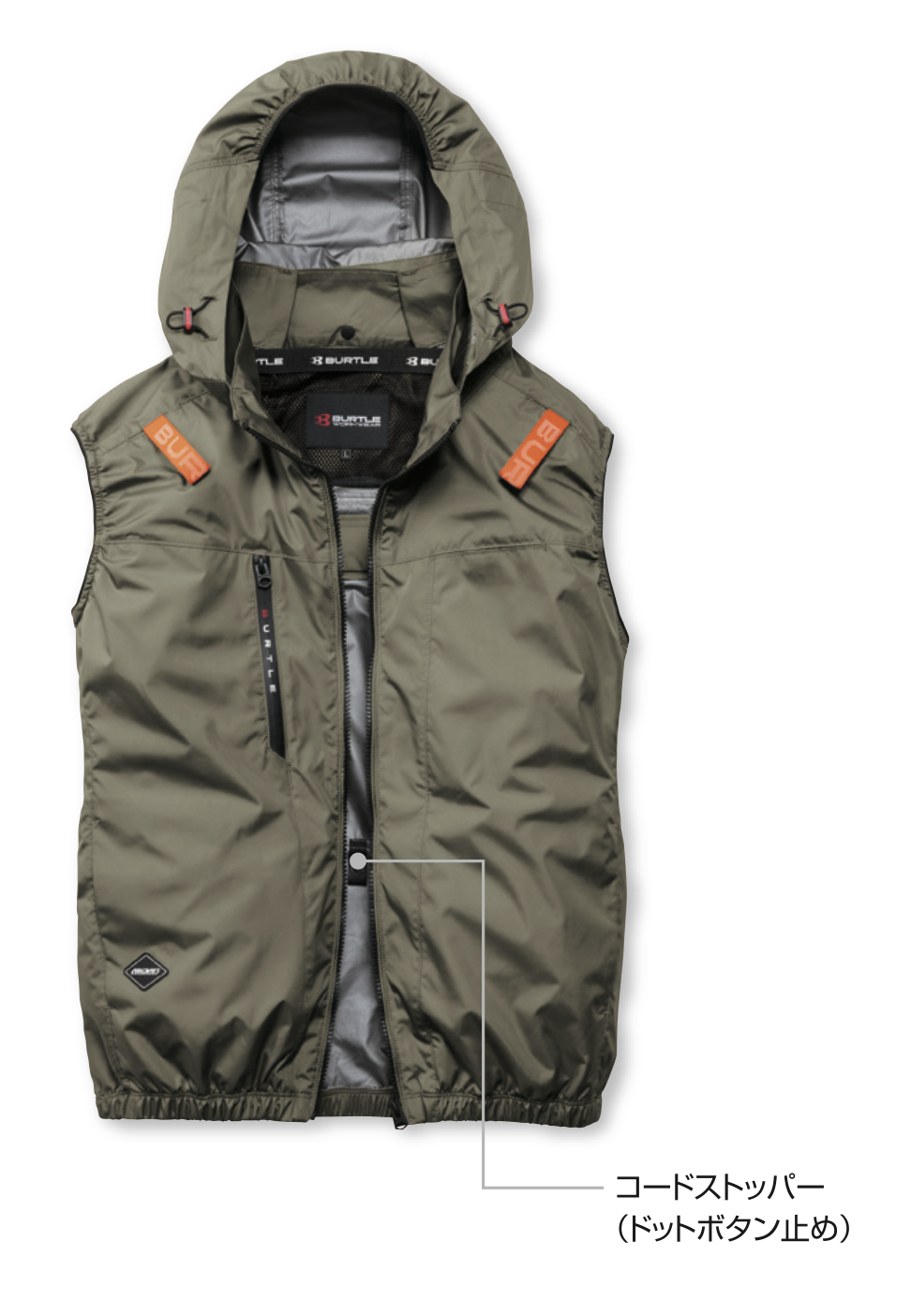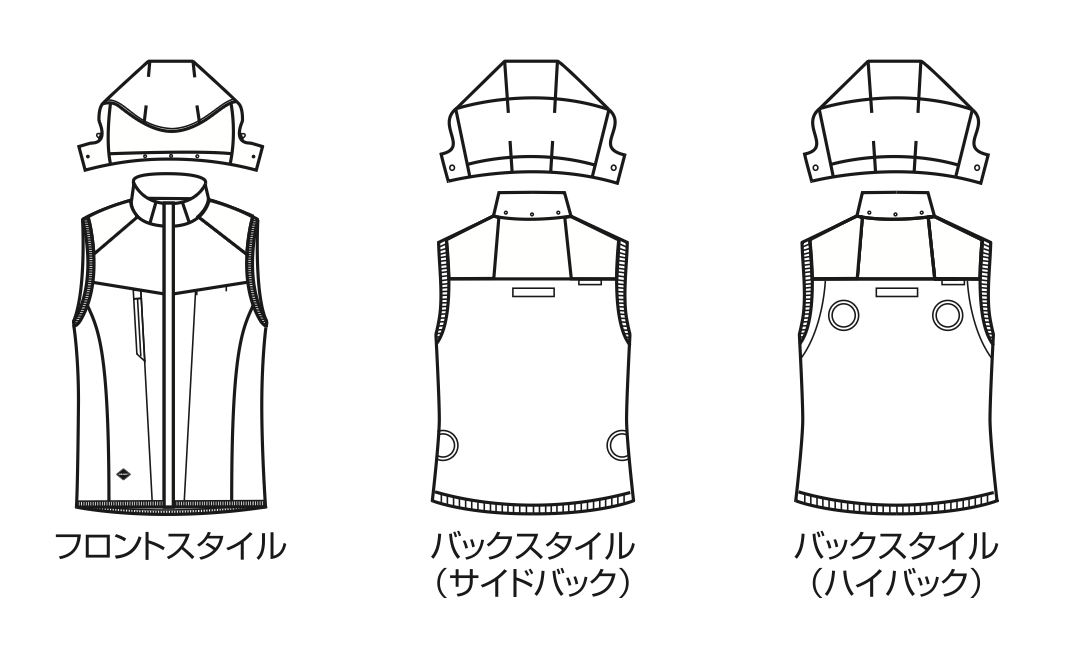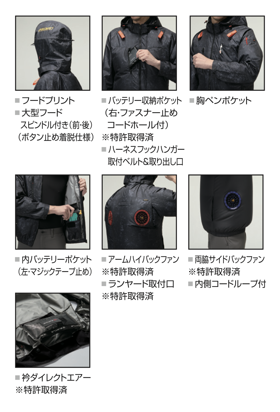 ★ヘルメット収納フード(着脱可能)、フックハンガー、背ランヤードホールを配備しフルハーネスに完全対応