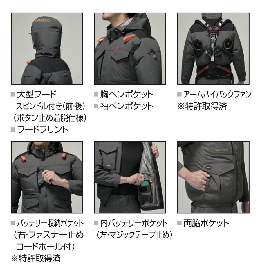 フルハーネス、安全ベスト、ショルダーなど様々なワークギア装着時にFANとの接触を軽減するミルスペックな多機能ポケットを配備するハイバックFANモデル