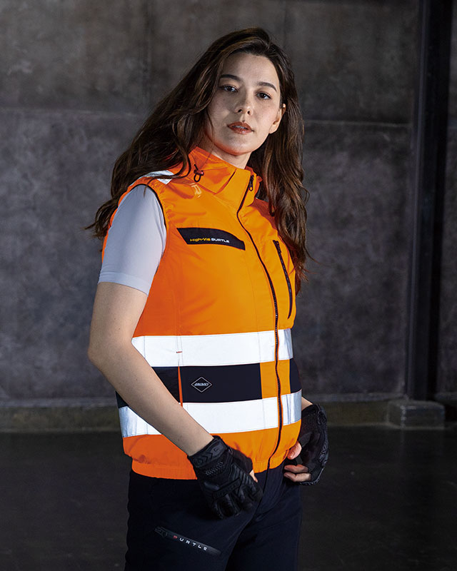 360度リフレクターを配備し高い視認性と安全性を確保、エコロジカルなSDGsにも対応したハイバック仕様プロダクト