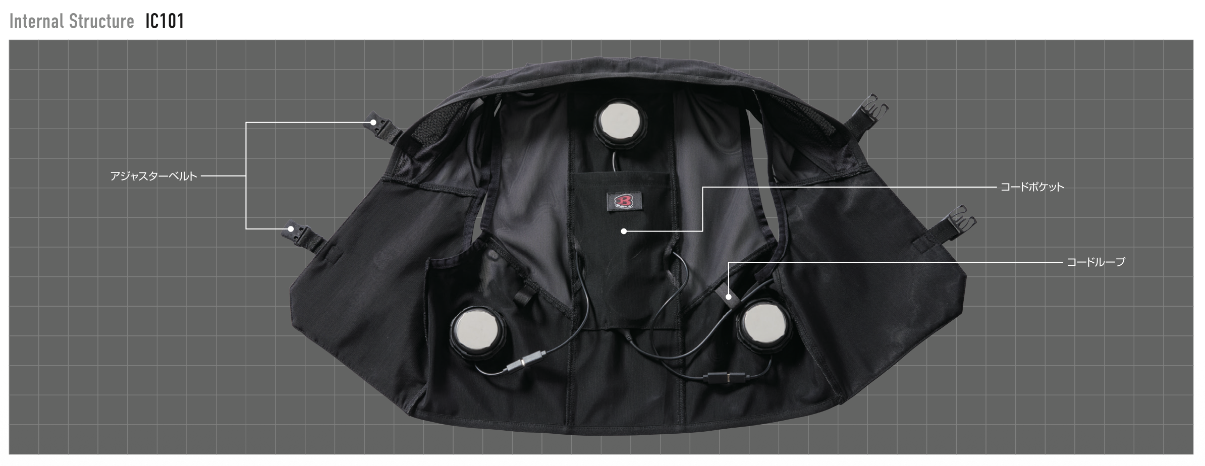 ★お好みの冷却ポイントを選べる首回り背脇面に6装着ホールを配置(IC101)