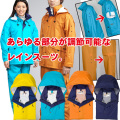 腕の長さ、足の長さ、お腹回りなどの『あらゆる部分を調整可能なレインウエア』として発売しました。