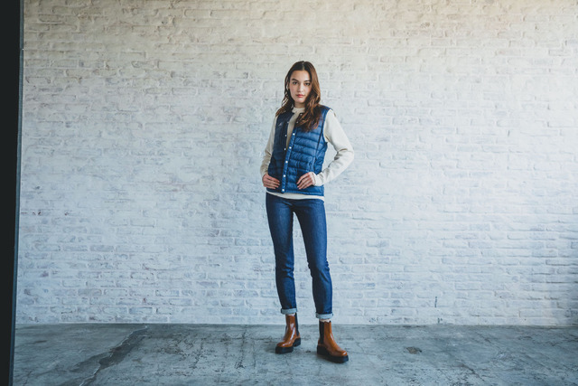ワークシーンのみならずデイリーシーンにもフィットするシンプルで洗練されたデザインとディテールを併せ持つインナークルーネックダウンベスト