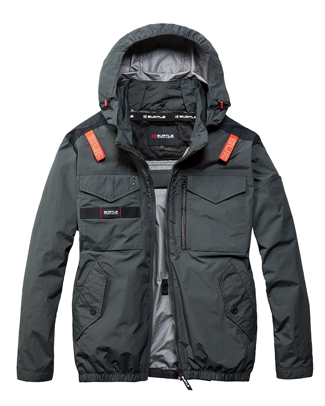 ★ヘルメット収納フード(着脱可能)、フックハンガー、背ランヤードホールを配備しフルハーネスに完全対応